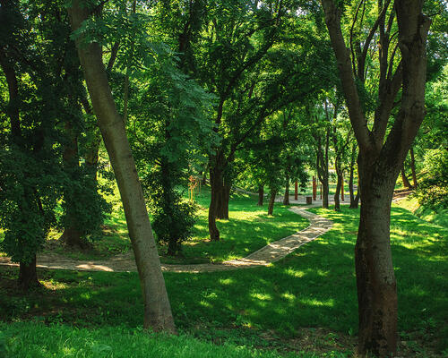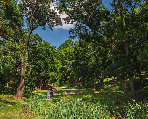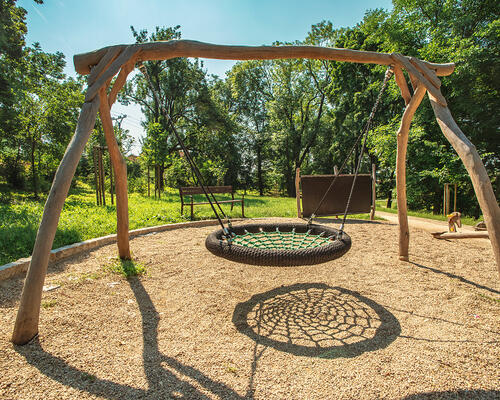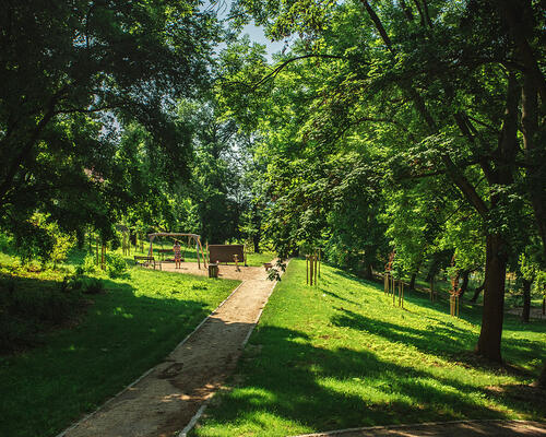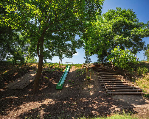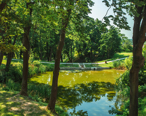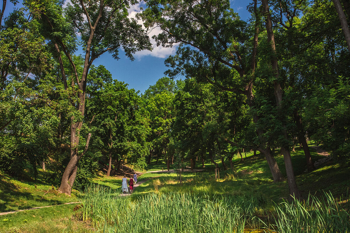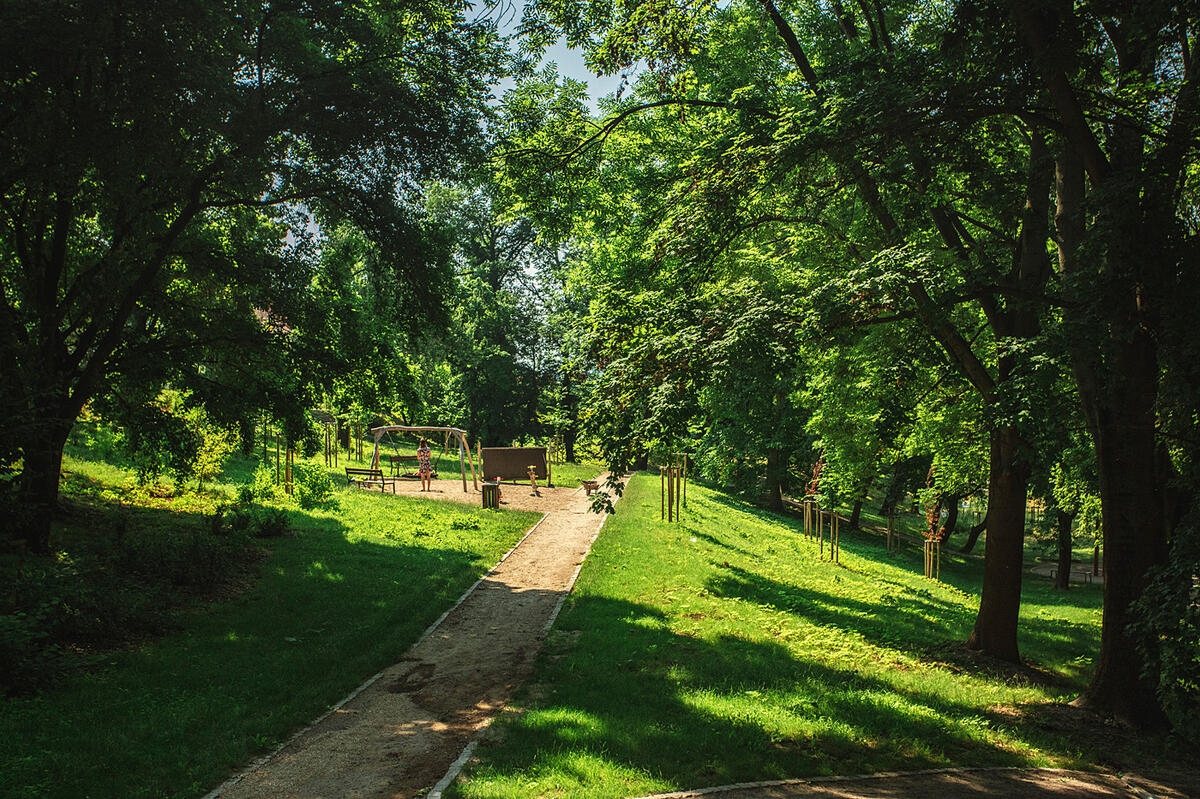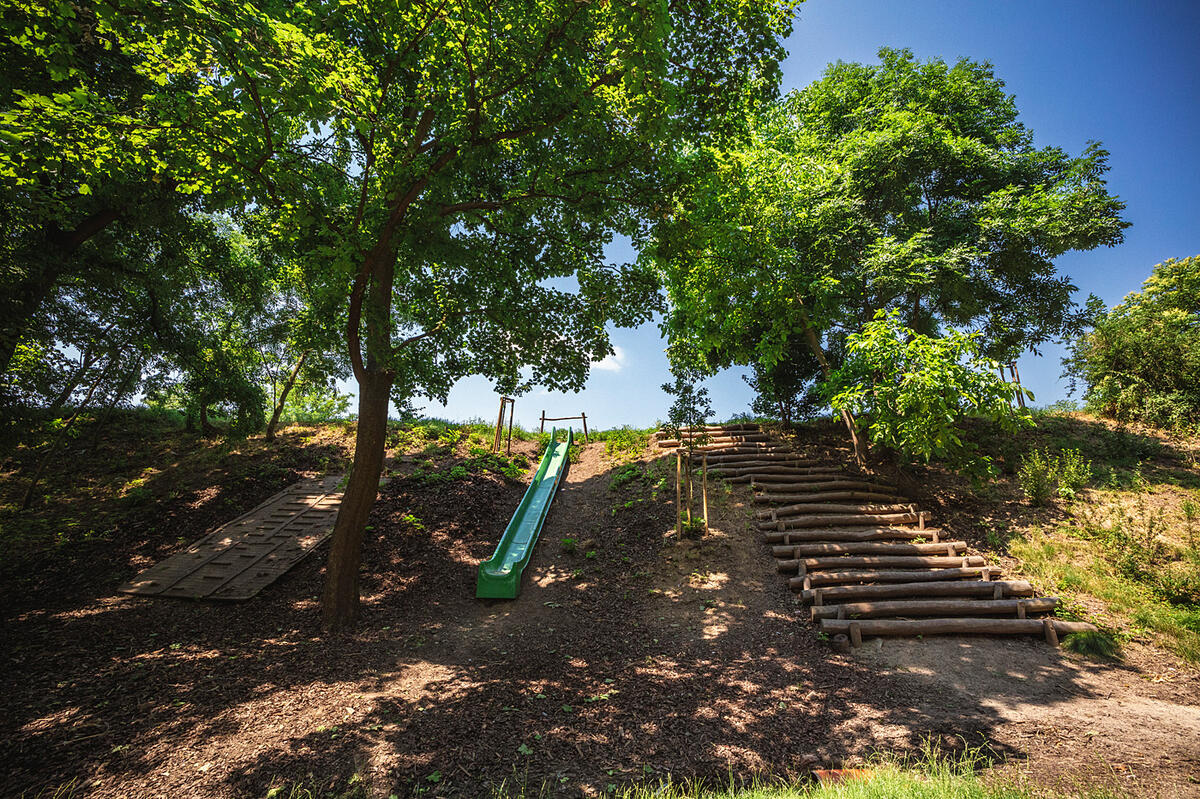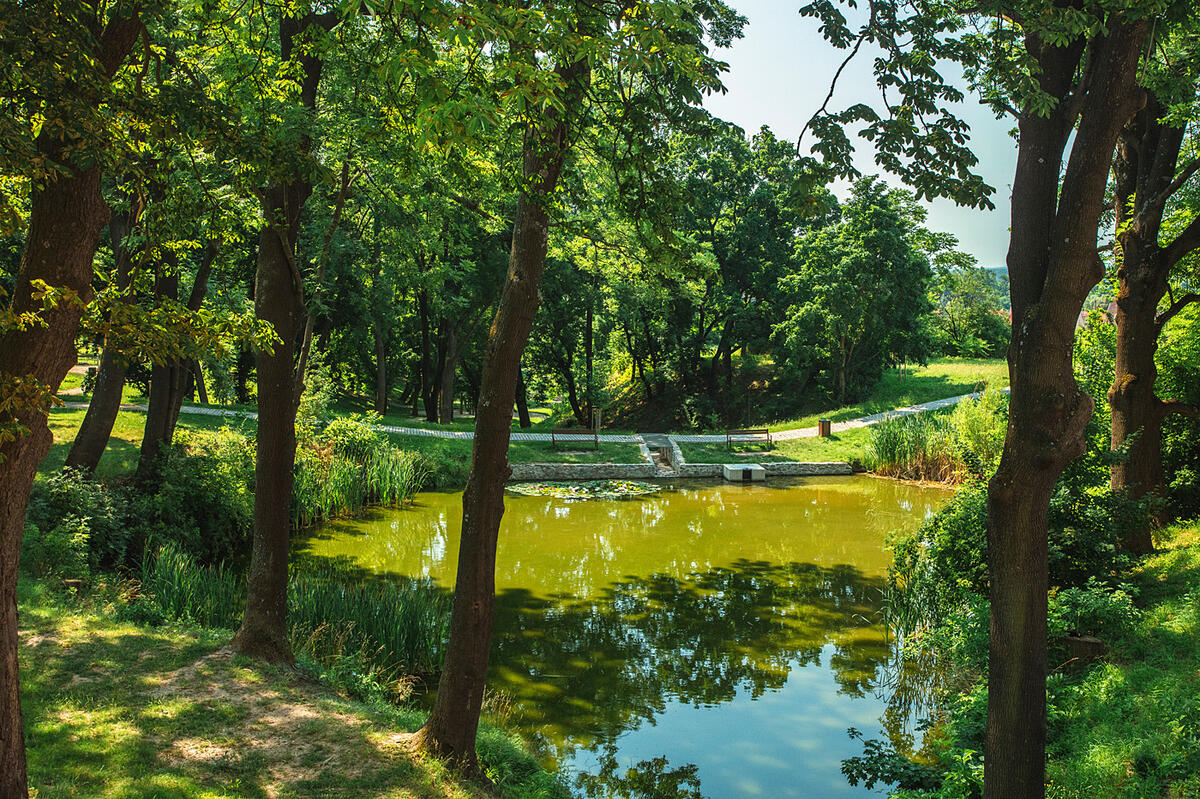 V původním stavu byla dřevinami zarostlá rokle se zanedbanými vodními nádržemi.
